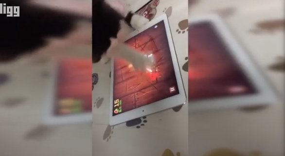 I realize many of you humans are big fans of online games but don’t leave your feline out of the fun. The cat in this video is called Mao Mao and she took over the game when her human set the tablet down. I might remind you all that our Female Human gave us a little iPad to play with when we were kittens. I got bored with the fish game but now I’m thinking I should check out some of the other games. Play on my feline furiends! And check out Mao Mao’s moves on the video. http://digg.com/video/cat-plays-tablet?jwsource=cl
