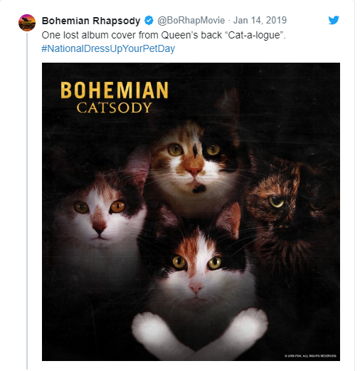 Cats make everything better! This “Bohemian Catsody” is also fitting because if you know anything about Freddie Mercury, you know he was a feline aficionado . At one time he was living with 10 cats in his mansion so we know Freddie would approve!