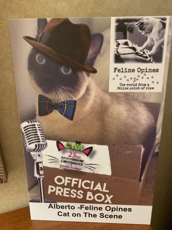 I have completed my feline journalistic duties for the Cat Writer’s Association’s 25th conference. It was very cool, lots of famous social media felines were there and