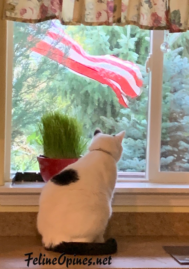 Hello Furiends, I hope all of you in the good old U.S.A. had a fantastic Independence Day. Our Female Human had a great time, helping to build floats and hanging out with her relatives at the lake. The closest we felines got to water was the shower in the Human’s bathroom!