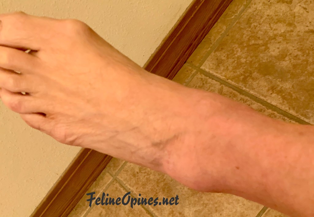 Once home she attended to her rapidly expanding ankle.(It was not a pretty sight.)
