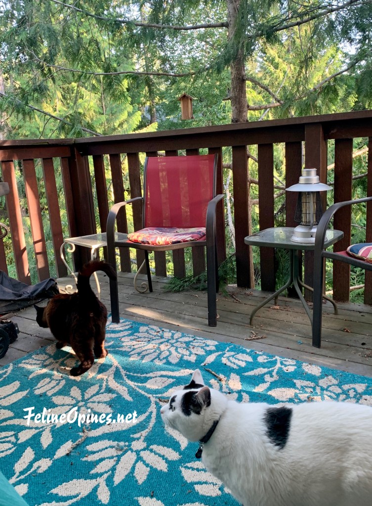 So we were left behind and the Human scampered off to the lake to spend time with her human relatives and (gasp) our canine cousin. And where were we? Left alone at home. Oh the cruelty!