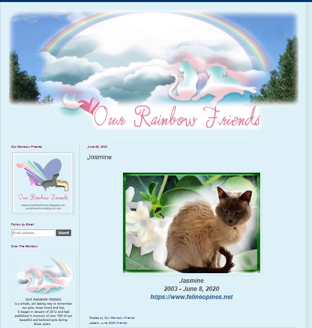 We have some wonderful furiends at Zoolatry who create beautiful monthly tributes to those who have crossed the Rainbow Bridge. We wanted to share the tributes for our Angel Tribe members Tucker and his sister Jasmine. We sure do miss them!