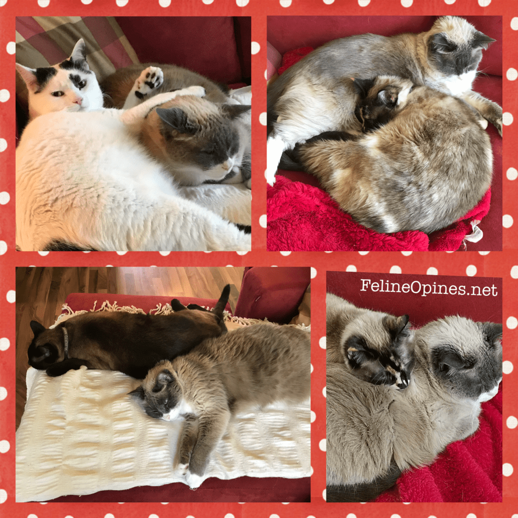 Hello Furiends, This is what the Feline Opines office looks like at the moment. Evidently two blog posts on the same day was much to much for some of the staff. (I won’t even show you a photo of our Purrsonal Assistant who has definitely “checked out” for the day)