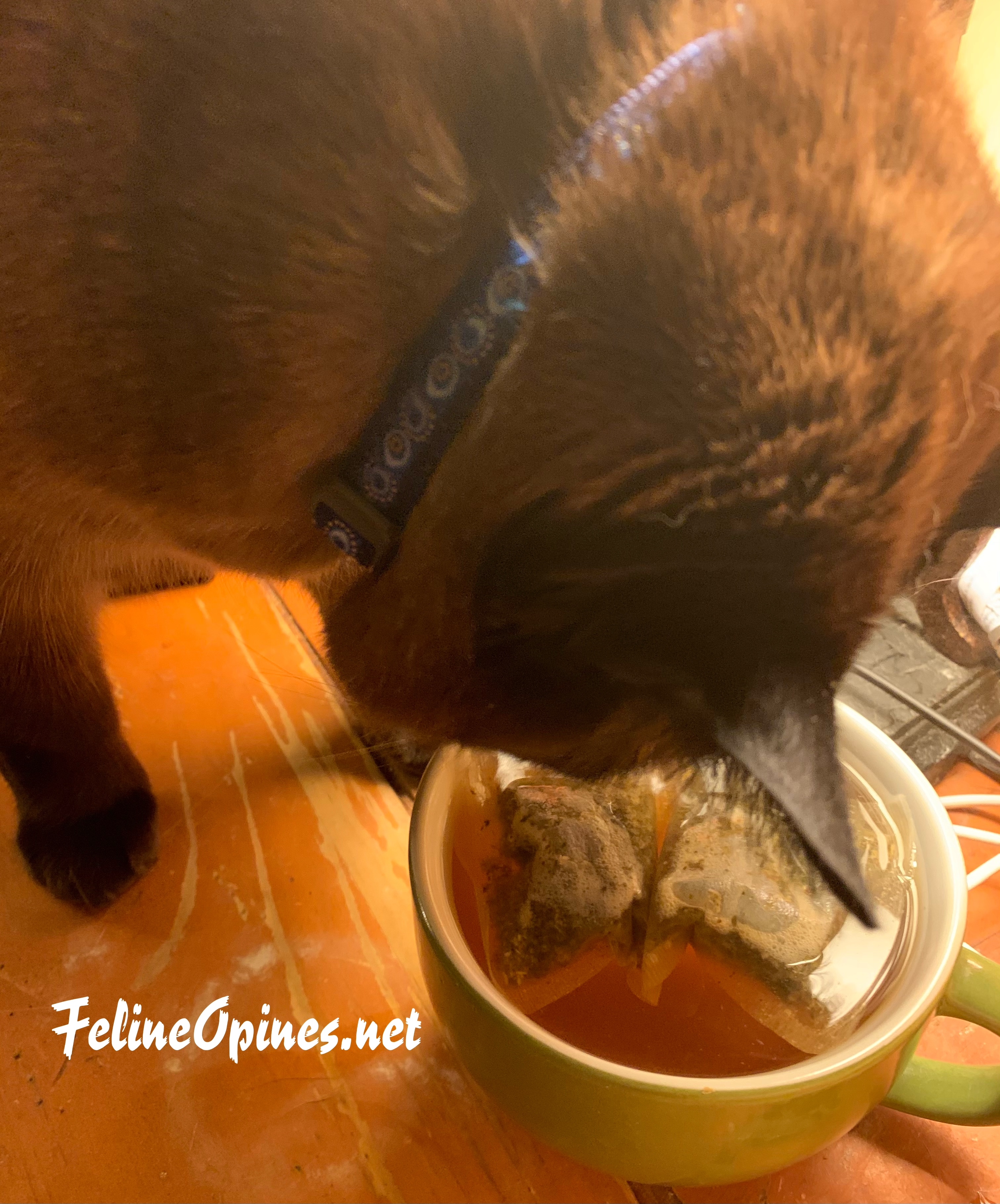 • The Human says she prefers the old Sleepy Time tea (I suppose me keeping her up at night getting into the garbage and dragging out the tea bags didn’t help her opinion of the tea😹😹😹