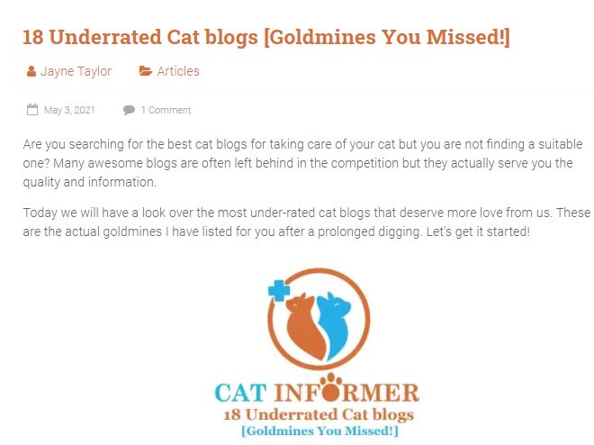 Now you may think that the D-I-E-T was the only topic of conversation this week but you would be wrong. We received a nice email from a human named Jayne who told us we’d been featured on the “top 18 list of most underrated cat bloggers” on the Cat Informer blog. You can read about us and the other 17 meowvelous cat blogs here. Thank you Cat Informer!