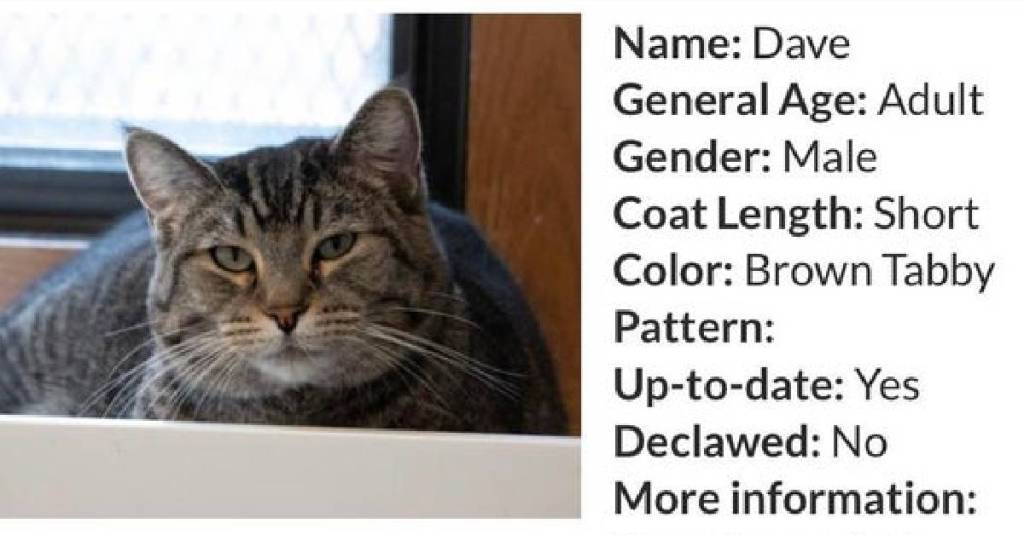 Animal Shelter Creates Hilarious Bio for Cat Called Dave
