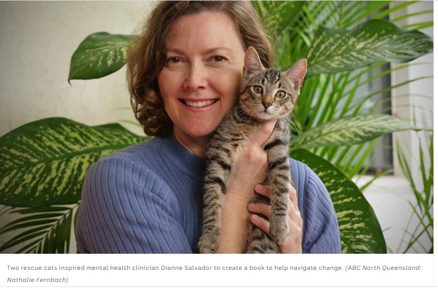 Mental health clinician, Dianne Salvador had her mind and heart changed when she rescued L’il Fox and Ming Ming. As she got to know her felines, she realized that her kitties could help others navigate change and wrote a book called Cat Shapes as a tool to help with change. She says that the knack cats have to transform captured her imagination and she thought the cat’s ability to adapt could help humans too.