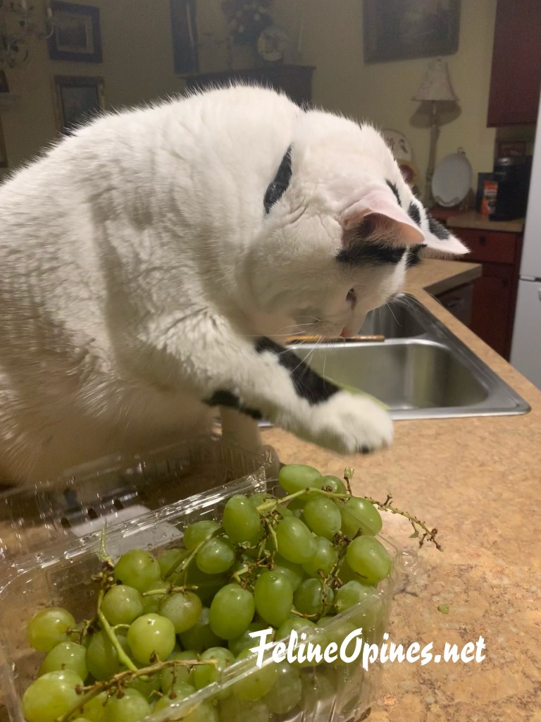 Oliver spent some quality time discovering grapes. In the end, he decided he’d rather have Temptations treats!