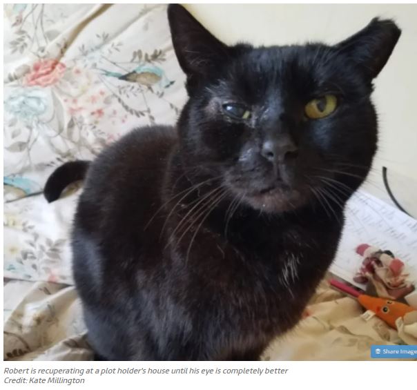Faith in humanity restored! Robert, a feline that has been the spokespurrson for a campaign to save Walsall Road allotments in 2019 needed his own campaign when the vet found two ulcers in his eyes.