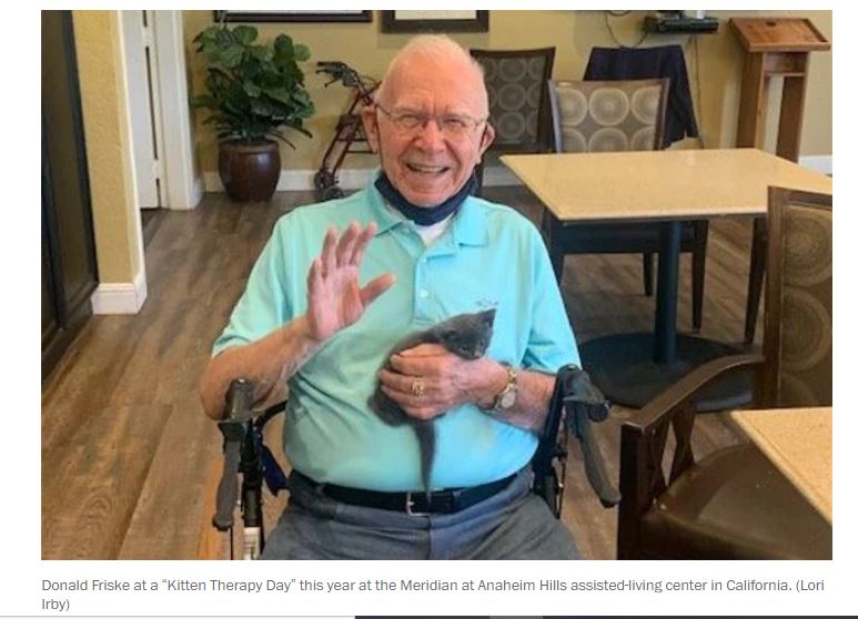 The business manager checked to make sure none of the residents had cat allergies and when everyone was “good to go” she opened her door to kitten visitors.