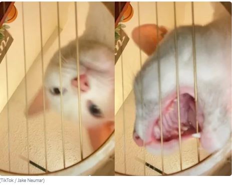 In her TikTok video Darla is seen hanging out on her cat perch to be closer to her beloved cat dad. She listens for his voice but he’s actually not in the room. He recently took a job out of town and so Dan keeps the bond strong with Darla by catching up with her via their home camera.