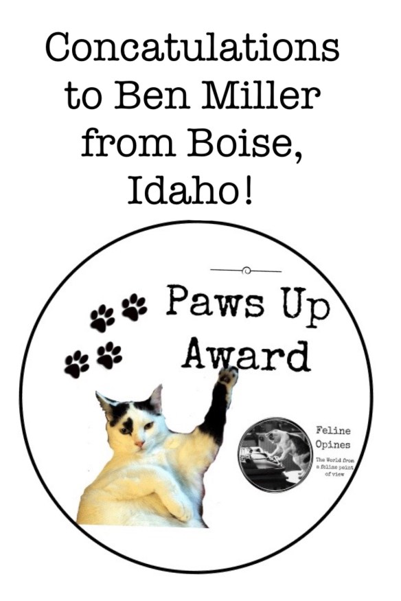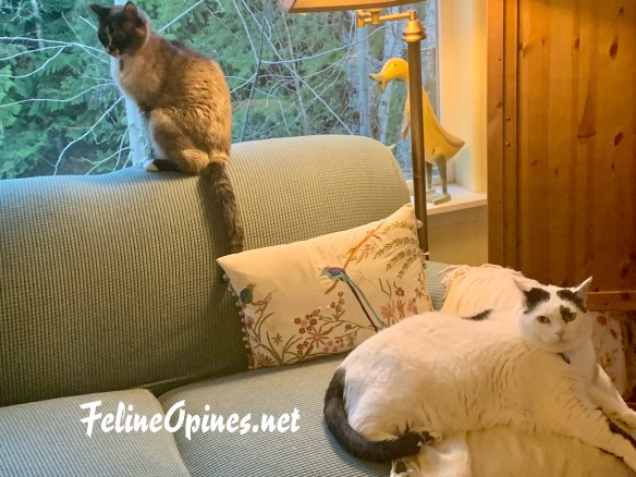 Meowza, April is almost gone. We are starting to see signs of spring in our neck of the wods and that makes us happy. Just about every morning there are sun puddles to soak in (until the rain comes). We don’t mind the rain though. After all the summers of fires we are happy to see the moisture.