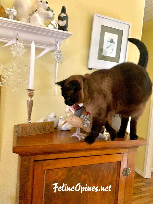 Full disclosure is needed here. The Human had the house designed so that the dining room (and the dining room table) are across from the glass sliders to the upstairs deck. What is a cat to do but to disobey this stupid rule?