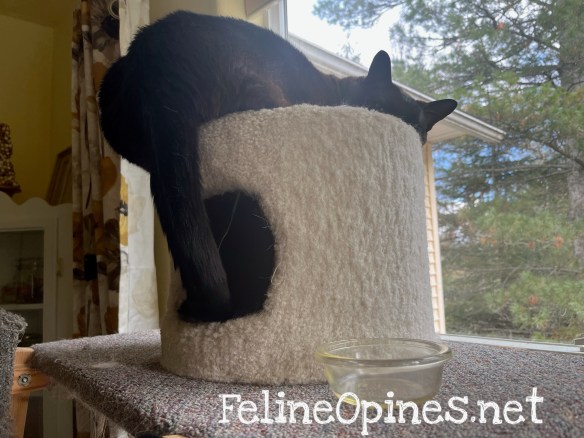 And since The Human is spending most days working in the home office, we like to hang out with her too. In this photo, I tried a new sleeping spot and position. Methinks I won’t be using that one too much.