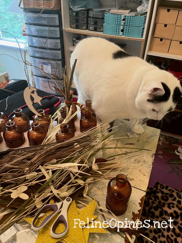 It’s a beautiful day in our neighborhood and we hope your neighborhood is beautiful too. After the several months of meowing about making the change from the place The Human called “the business” to moving all work to our home office we are finally settling into a routine. I thought it might interest you to take a tour to see where all the magic happens and all the work gets done. As you will note from the photos, we felines are an integral part of all the creative work that comes out of this space and here’s the photographic evidence of the stresses and heavy demands of our daily routines.