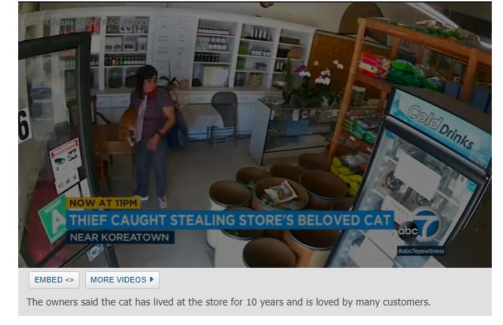 Thief caught stealing beloved store cat named MiMi at shop near Koreatown
