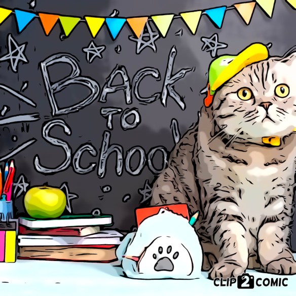 That’s our cartoon version about what it would be like if The Tribe had a first day of school. What about you, any of my feline furiends interested in getting an education? And how are you surviving with some of your human family leaving you to go back to school?