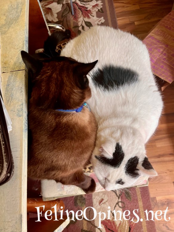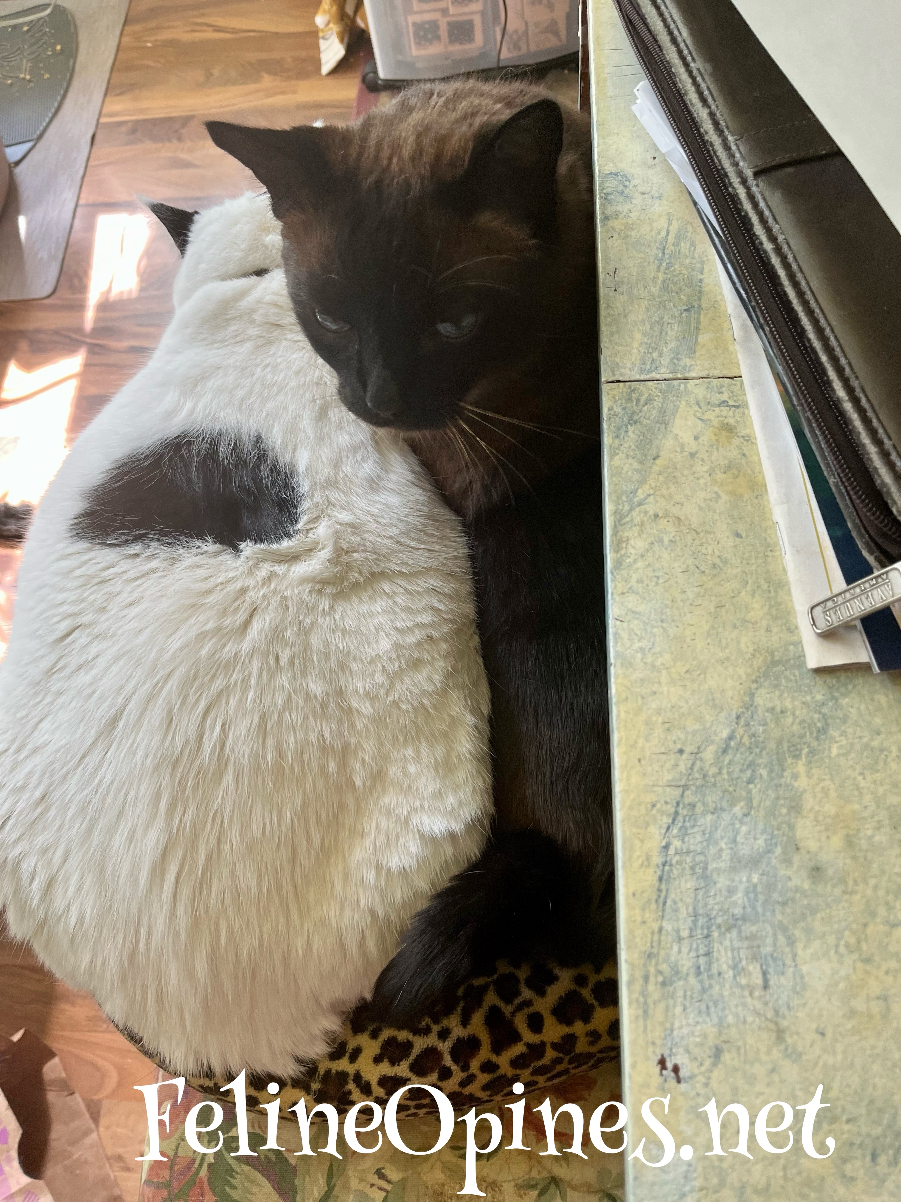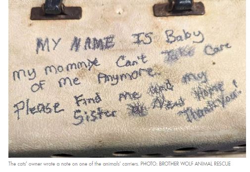 She believes the fighting is why the cats were in crates but does not know for certain. Once taken to the Humane Society, where they lived together in a room, they largely kept to themselves.