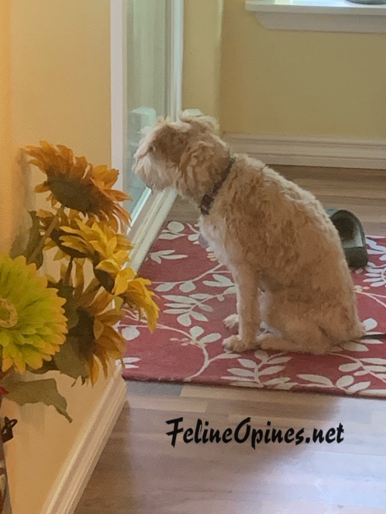 final-53 Published July 10, 2019 at 3024 × 4032 in final-53 KD the (gasp) dog at our house waiting for the squirrel to come to the upstairs deck.