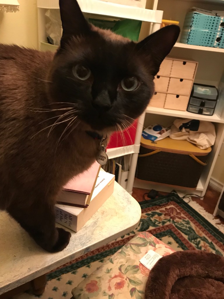 img_2739 Published March 27, 2018 at 3024 × 4032 in img_2739 Me deciding if I should help The Female Human with her crafts or take a snooze on the cat bed on the bench.