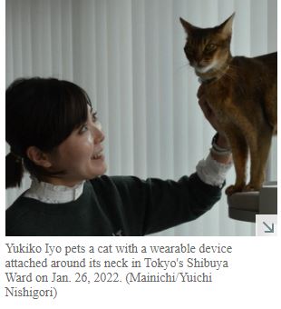 Yukiko Iyo, a 41-year-old cat lover in Shibuya Ward, studied bio-logging which is a method to investigate the ecology of wild animals by attaching small measuring instruments such as GPS devices on them — at Tokyo University of Marine Science and Technology Graduate School. She used that experience to set up institute operator Rabo Inc. on Cat Day in 2018.