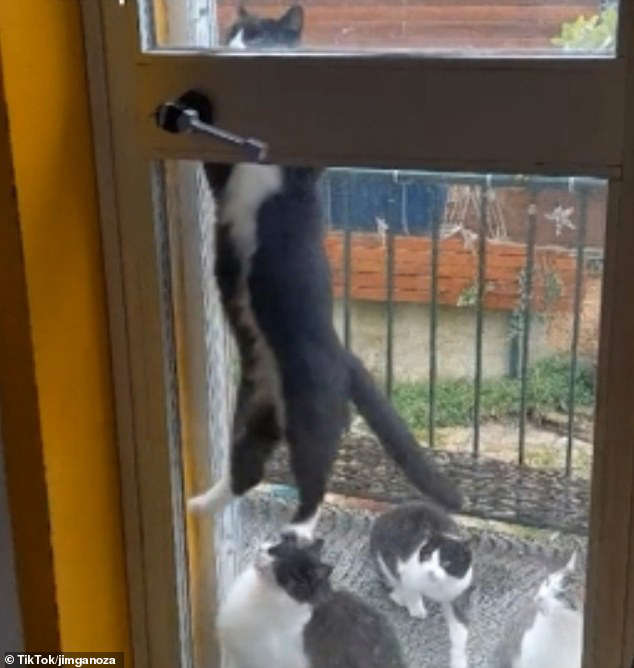 Who needs to get a human’s attention to let you in the house if you have skills like this feline? When Silvestro wants in (or wants to invite his friends in) all he has to do is open the door himself.