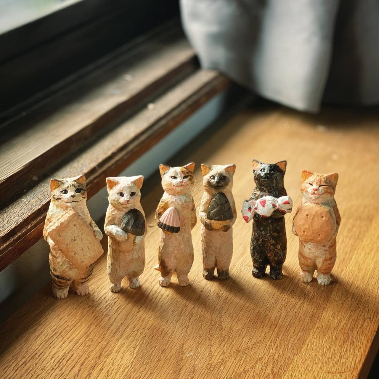 Meowza, there are artists and then there are artists and this artist, Japanese sculptor Sakura Hanafusa knows felines! I love the whimsy in the carvings and ow Hanafusa captures the essence of our feline purrsonalities.