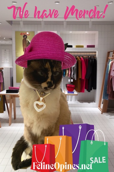 Visit our merch shop. Find everything from t-shirts to water bottles and lots in between. All images are original FelineOpines graphics.