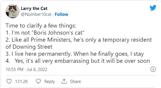 I believe Ms. Truss paid attention to Larry’s popularity and she suggested that the cat’s place in Downing Street will be secure. Clearly Ms. Truss is a wise woman, at least when it comes to cats.