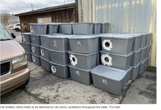 The organization set a goal to raise $5,000 for supplies and build a minimum of 200 cat houses. So far, supporters have raised $4,630, and 142 cat houses have been created. A local Eagle Scout Troop 29 participated in the building.