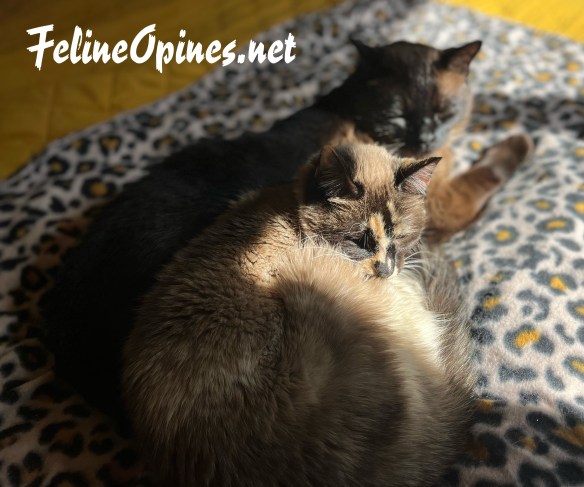 We have asked The Human to get out the tape measure and see how tall we are and how long our tails are. We’ll report back next week.