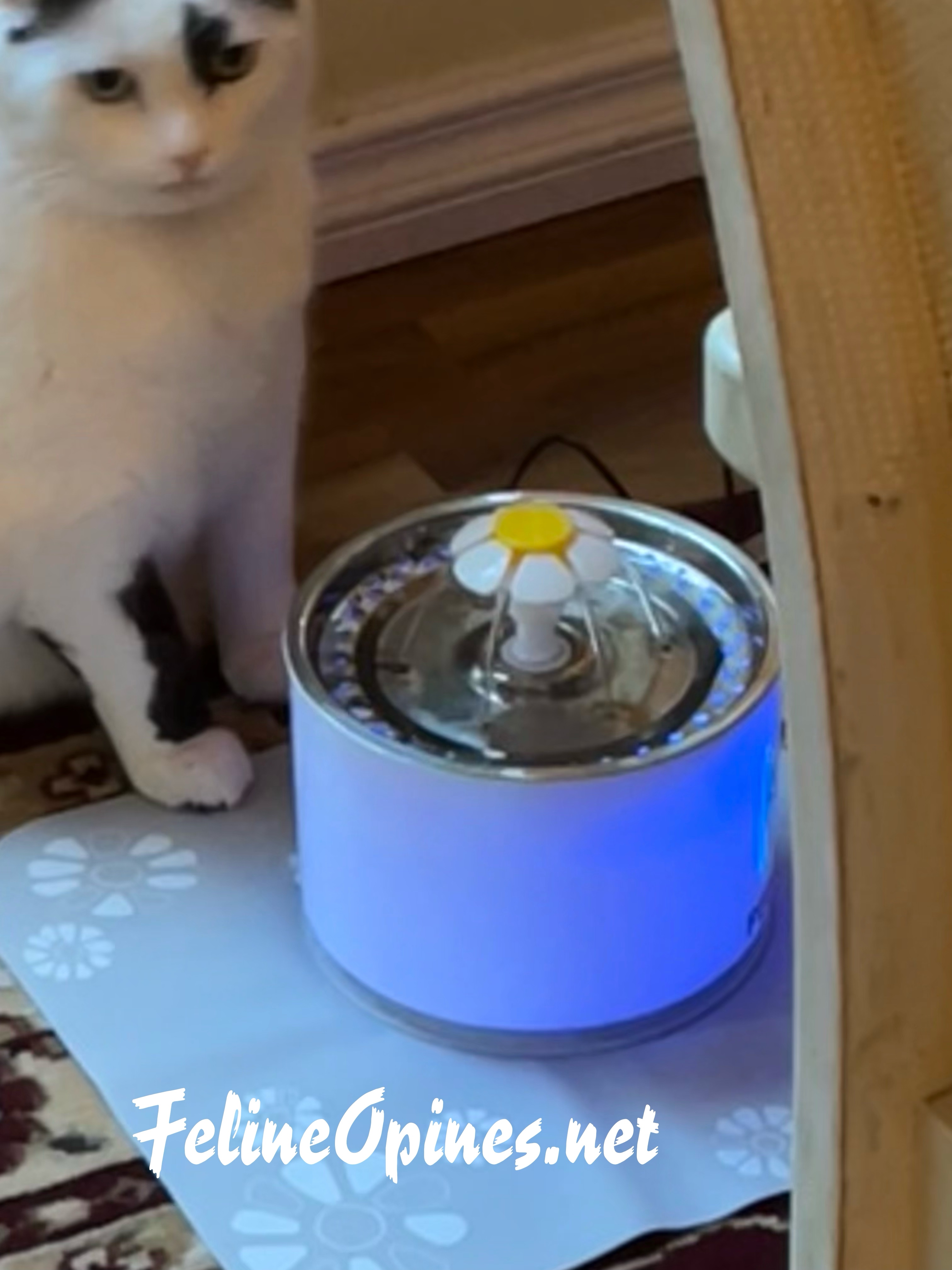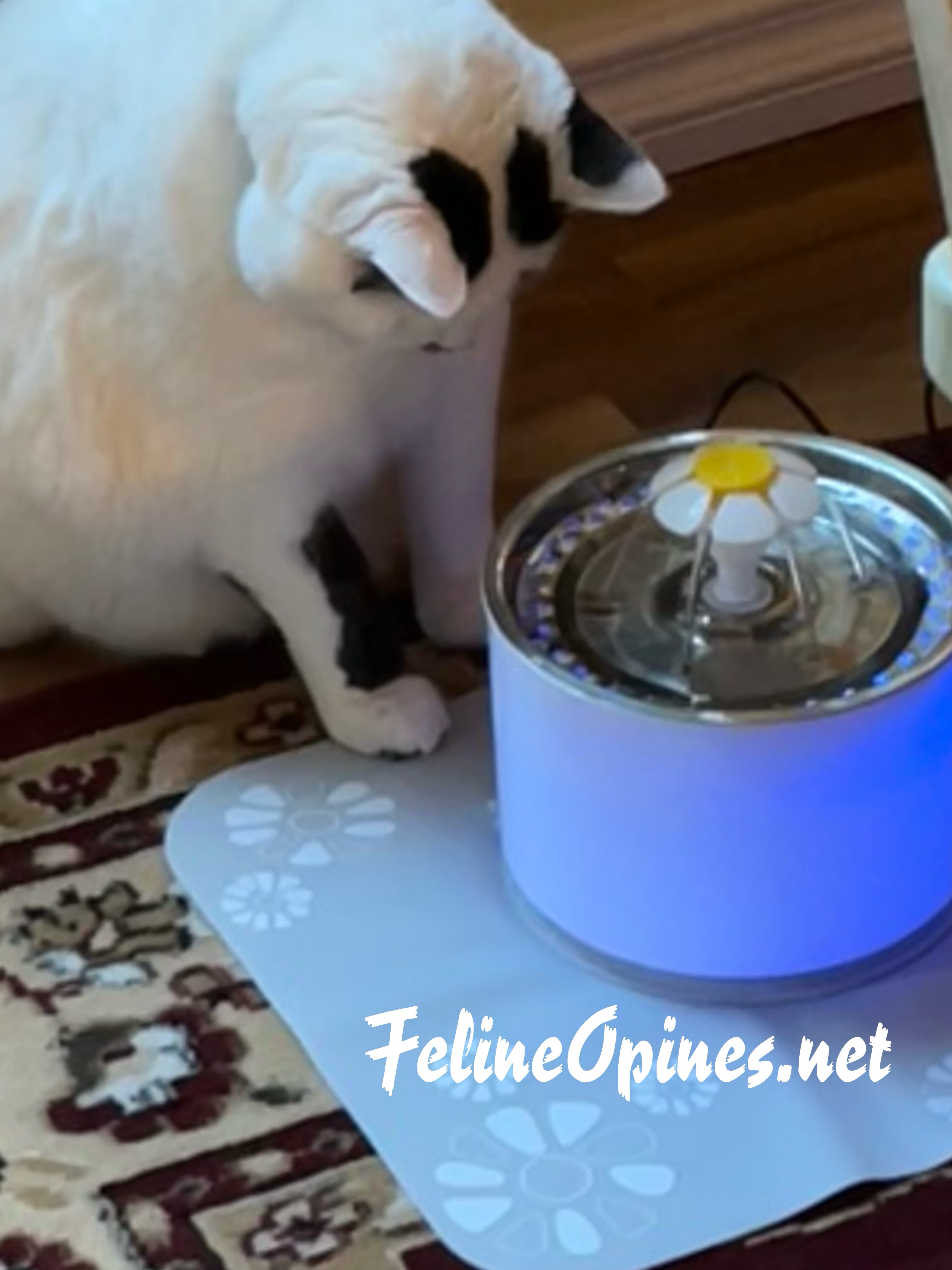 The Human bought us a drinking fountain. Lily and I are cutting it a wide swath but it’s early days yet and frankly, I don’t see the need to drink from that thing when I have The Human trained to turn on the bathroom faucet for me. Oliver is an early adaptor and he was the first to check it out and and he drinks out of it. Lily and I are in “wait and see” mode.