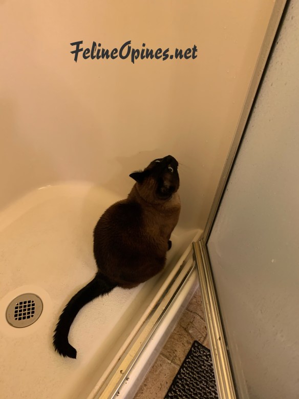 The whole endeavor stressed me out so I had to retire to the shower and ask the human to turn on the water. Sheesh, a cat’s life is complicated!