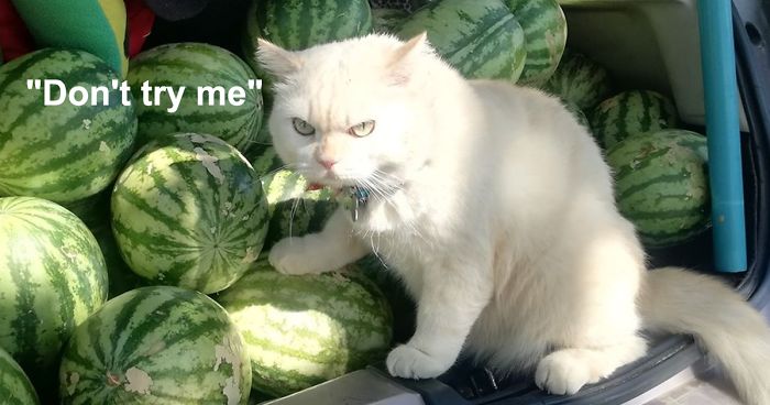 Don’t let this guy’s grumpy face fool you. This cat named Pearl is serious about his job. He’s been guarding a watermelon farm for almost 6 years and is much loved by his humans. His human says he is the sweetest feline in the village.