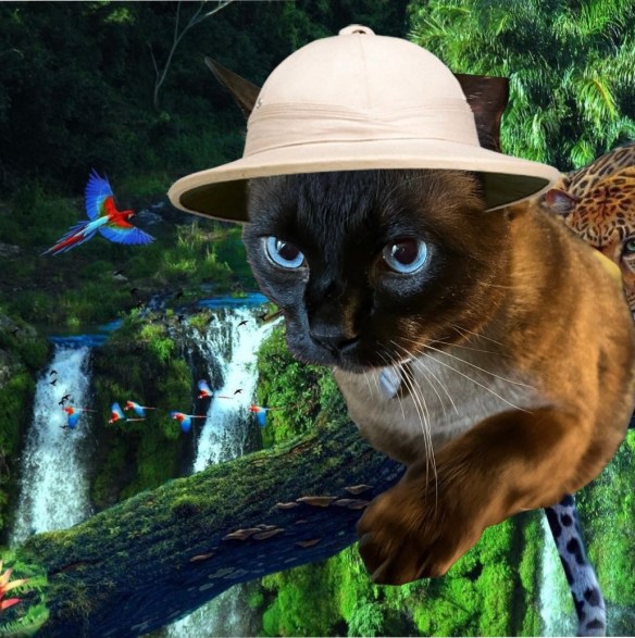Hi there, it’s Al, feline adventurer of great fame All the jungle creatures know me by name. I chase tropical birds and hang out with gorillas I’d rather sleep in the trees than doze off in a villa