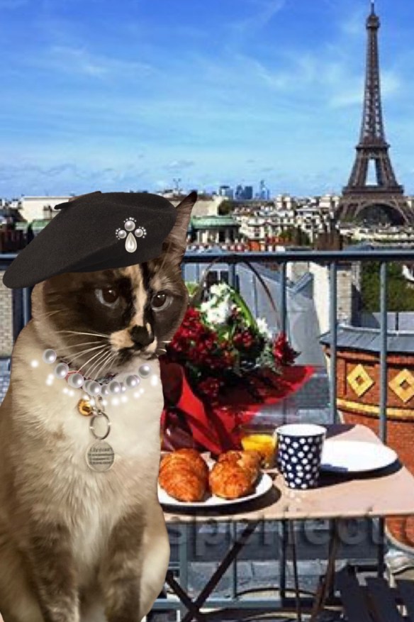 The dreaded door-bell ringing festival is coming next Monday. If The Human cared about us, she’d hang a note on the door addressing those candy beggars that says, “Please knock quietly and for heaven’s sake DO NOT RING THE DOORBELL!” Hand in hand with this terrifying practice is the “Let’s stuff our hapless felines in ridiculous costumes” tradition. Oliver, Lily and I have made it quite clear that costumes are a “no-go” for us. Still, we didn’t want to be total party poopers so we suggested The Human Photoshop us in clothing, places and situations that we think would be fun. She agreed and we hope you enjoy the results.