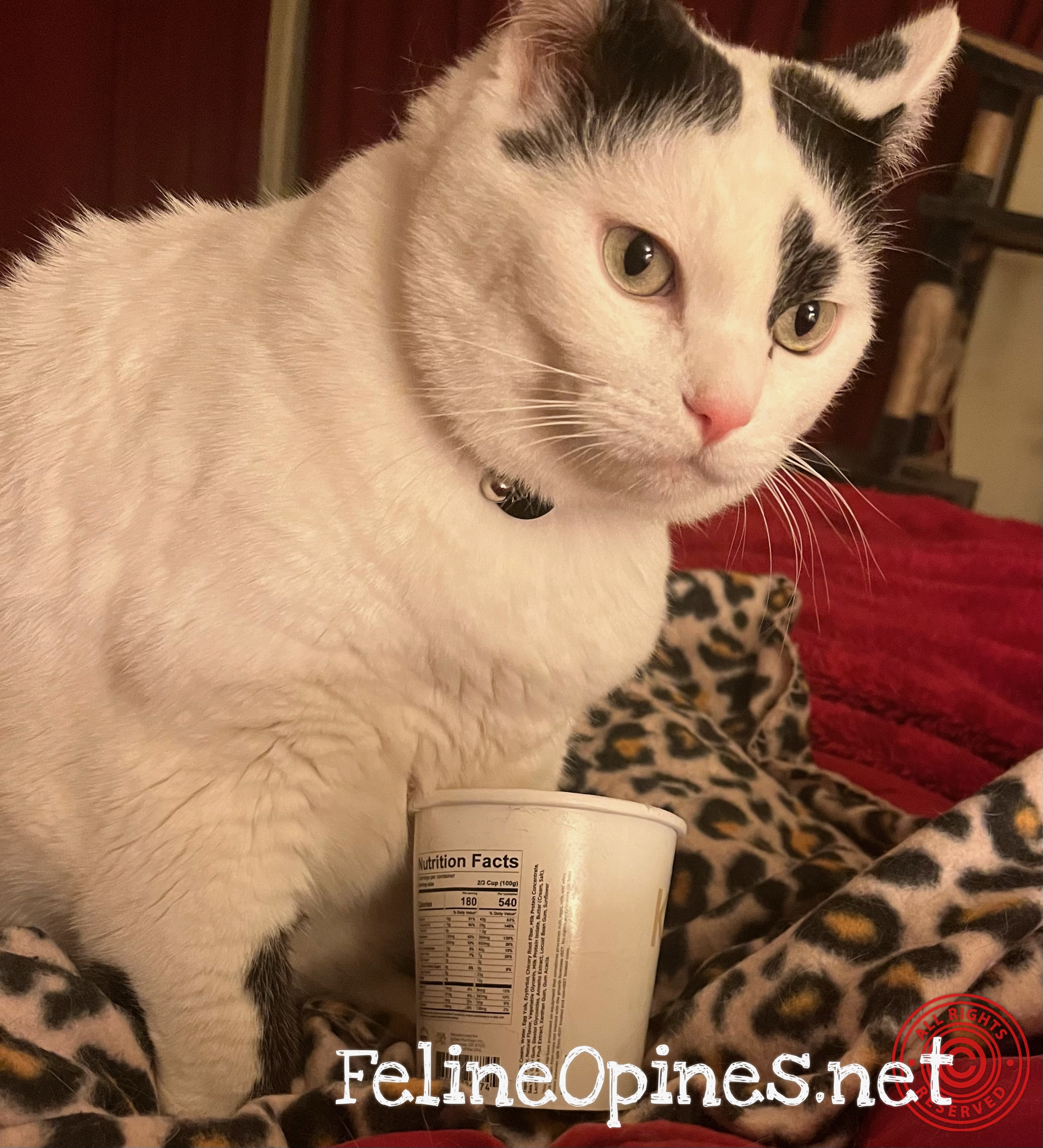 Oliver figured he’d look for something else to eat and decided to bug The Human as she ate her “keto” ice cream. Little did Oliver know that she wasn’t eating some sugary, creamy rich dessert. Good grief Human, why bother??