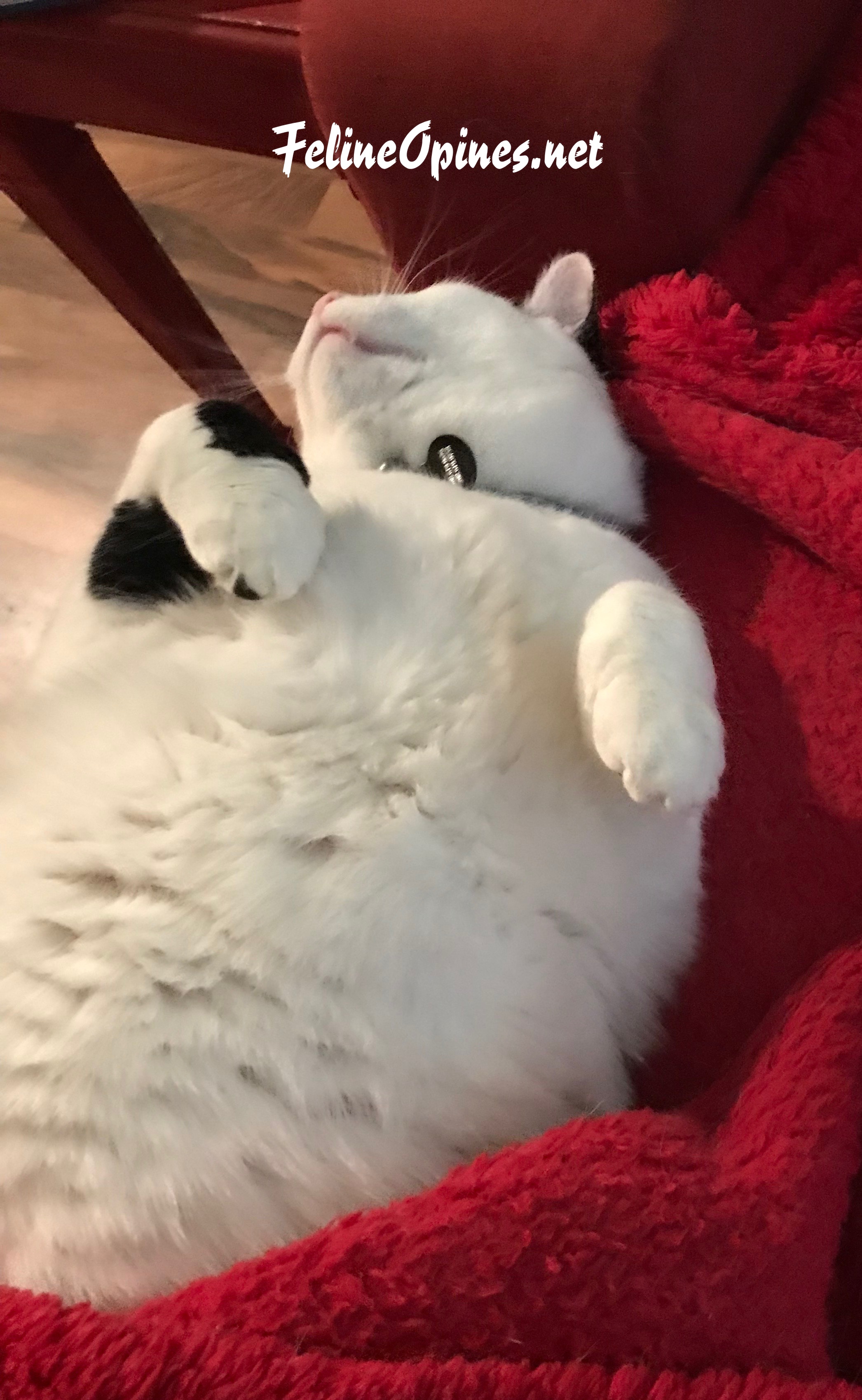 Oliver tried to convince me that he sat in our felted bed this way because it was getting too warm to sleep inside it. I told Oliver I thought his expanding girth was proving to be too much to fit into the bed. Oliver was not amused.