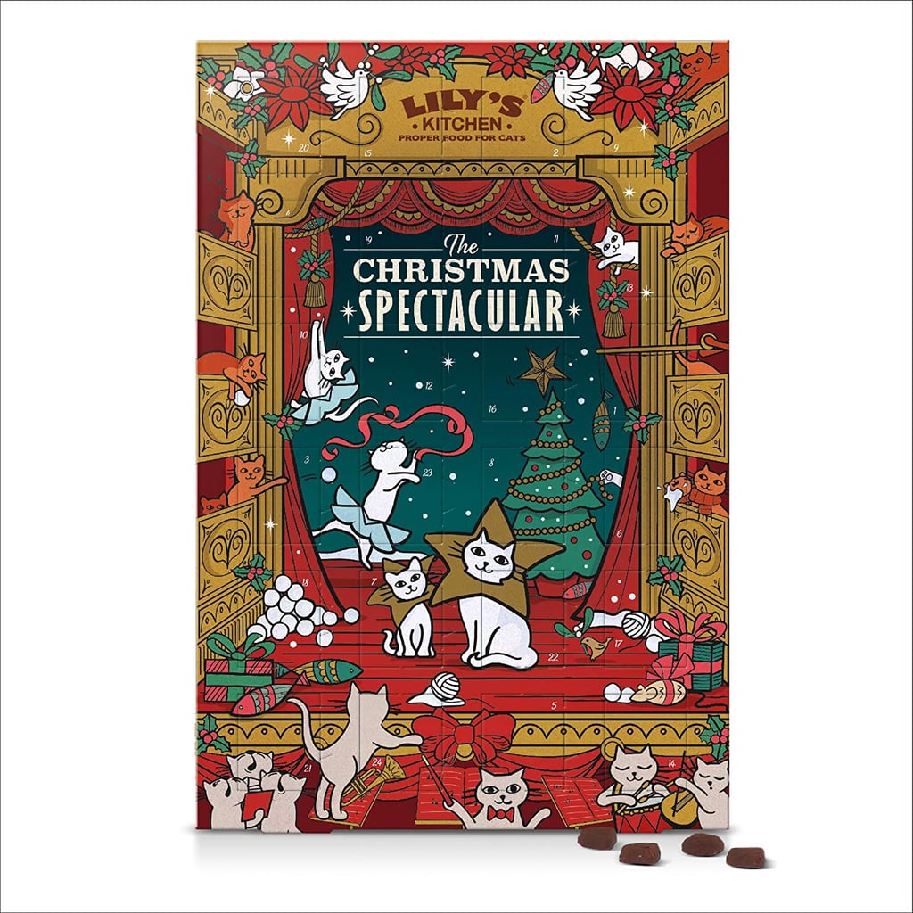 Our Lily wants this one because it’s called Lily’s Kitchen Christmas Cat Advent Calendar. There are 24 meaty gourmet treats of many flavors for the refined feline palate, such as chicken with liver and turkey with cranberry, The cost is $32.00