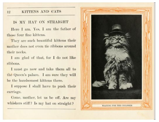 The book, Kittens and Cats: A First Reader was a hit with children of the day who loved reading about, Queen Cat, Dunce Cat, Granny Gray, and Party Cat.