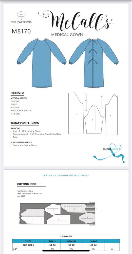 Our Human heard the shelter director speak last week and one of the things she talked about was the specific challenges of running a shelter during COVID. The most pressing issue was that they couldn’t do the medical treatments for kittens and cats because they didn’t have enough surgical gowns. They brought patterns to the meeting and asked for help.